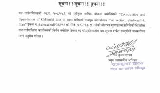 जिम्मेवार अधिकारीः- प्रमुख प्रशासकीय अधिकृत सेवा दिने कार्यालयः- चुलाचुली गाउँकार्यपालिकाको कार्यालय सेवा शुल्कः- 0
