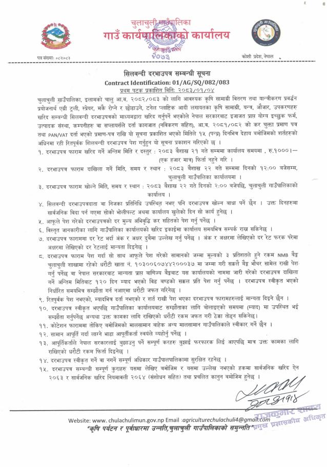 Home » सिलवन्दी दरभाउपत्र सम्बन्धी सूचना।