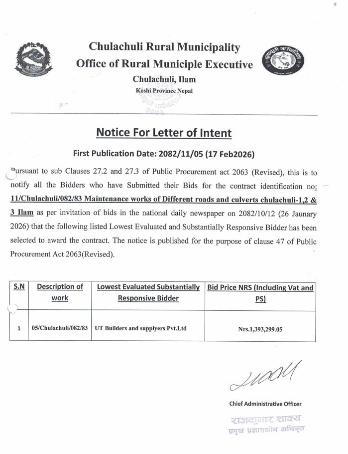 Home » Notice For Letter of Intent. (Description: 05/Chulachuli/082/83)