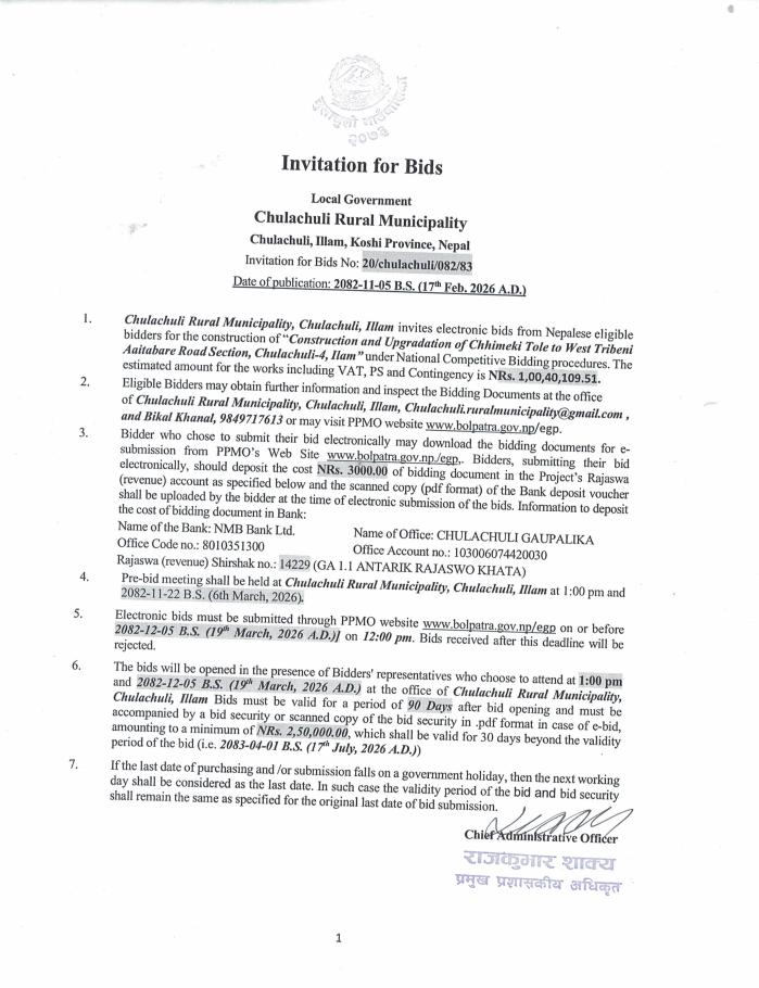 Invitation for Bids (No: 20/chulachuli/082/83)
