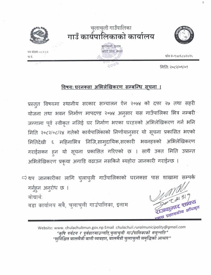 घरनक्सा अभिलेखिकरण सम्बन्धि सूचना