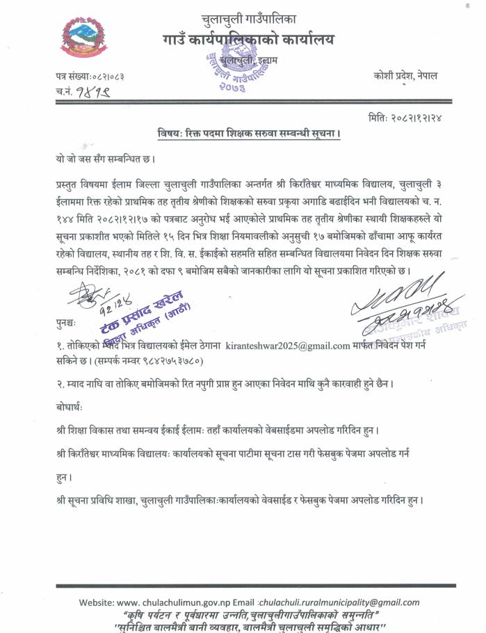 Home » रिक्त पदमा शिक्षक सरुवा सम्बन्धी सूचना ।